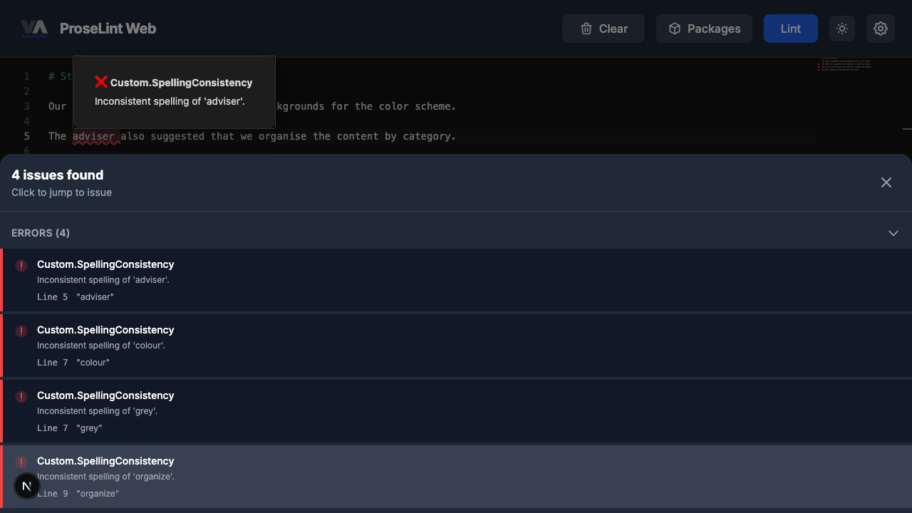 - ProseLint Web editor — try it now