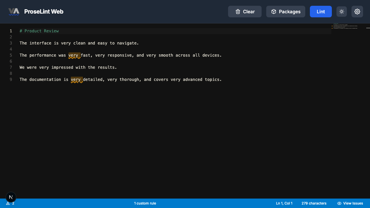 Open the ProseLint Web editor in your browser. No account or installation required.